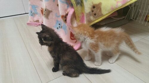 急遽、ハウスデビューすることになりました。花光、精一杯がんばります。初お預かりは「びゅ4兄妹」5/3生まれ 簡単に紹介させて頂きますね。 びゅりと ♂ 茶白 慎重派 パッと威嚇します。しっかり成長中。怖がりだけど、冒険家 大きくなりそうな予感。 びゅぱ…